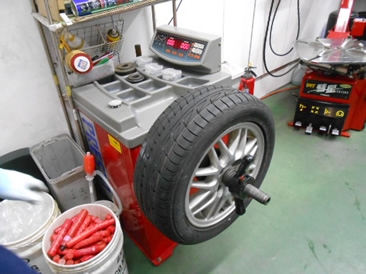 タイヤに錘をつけてアンバランスを矯正する作業をバランス調整といいます。